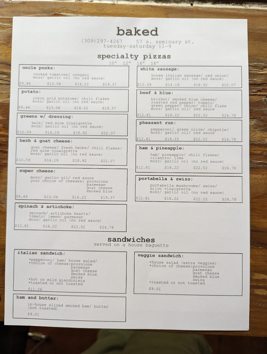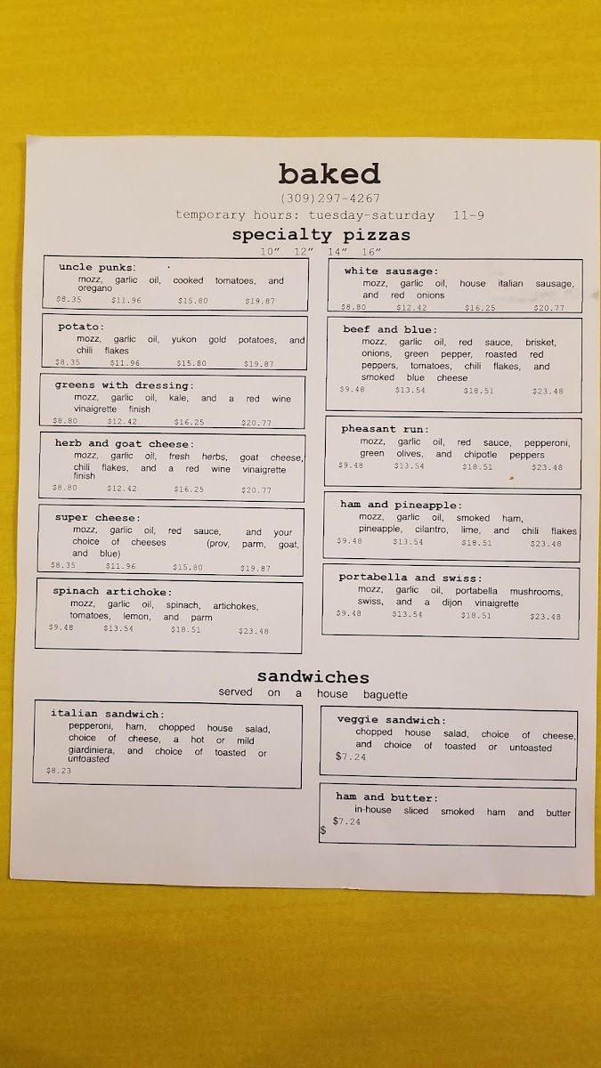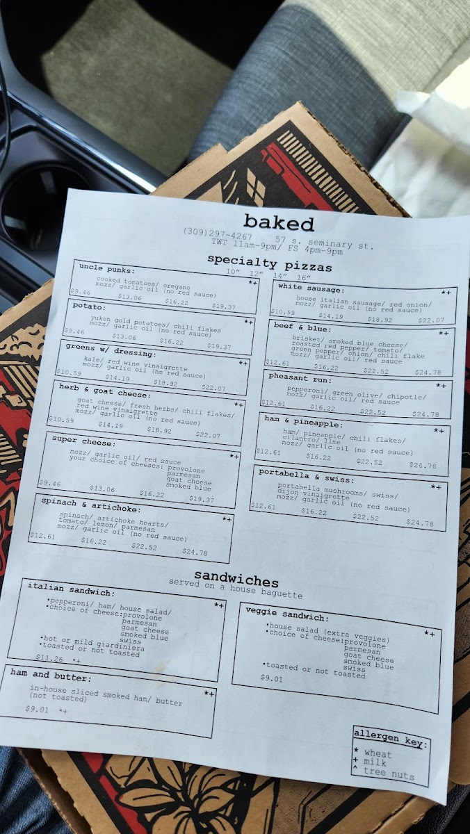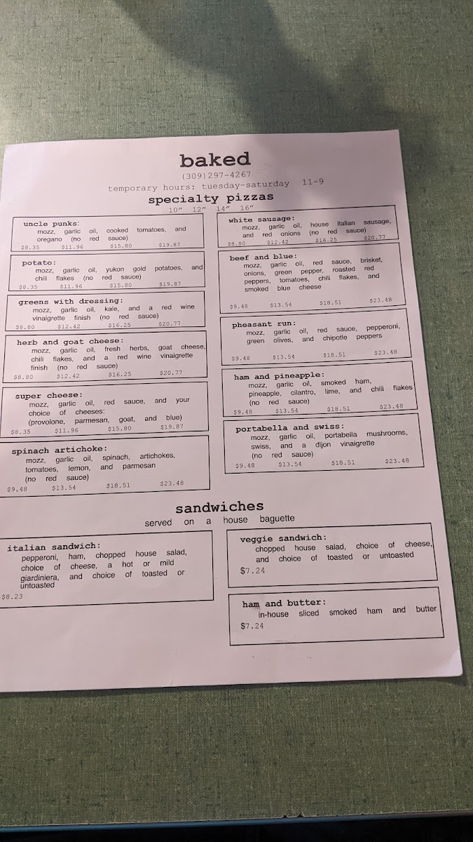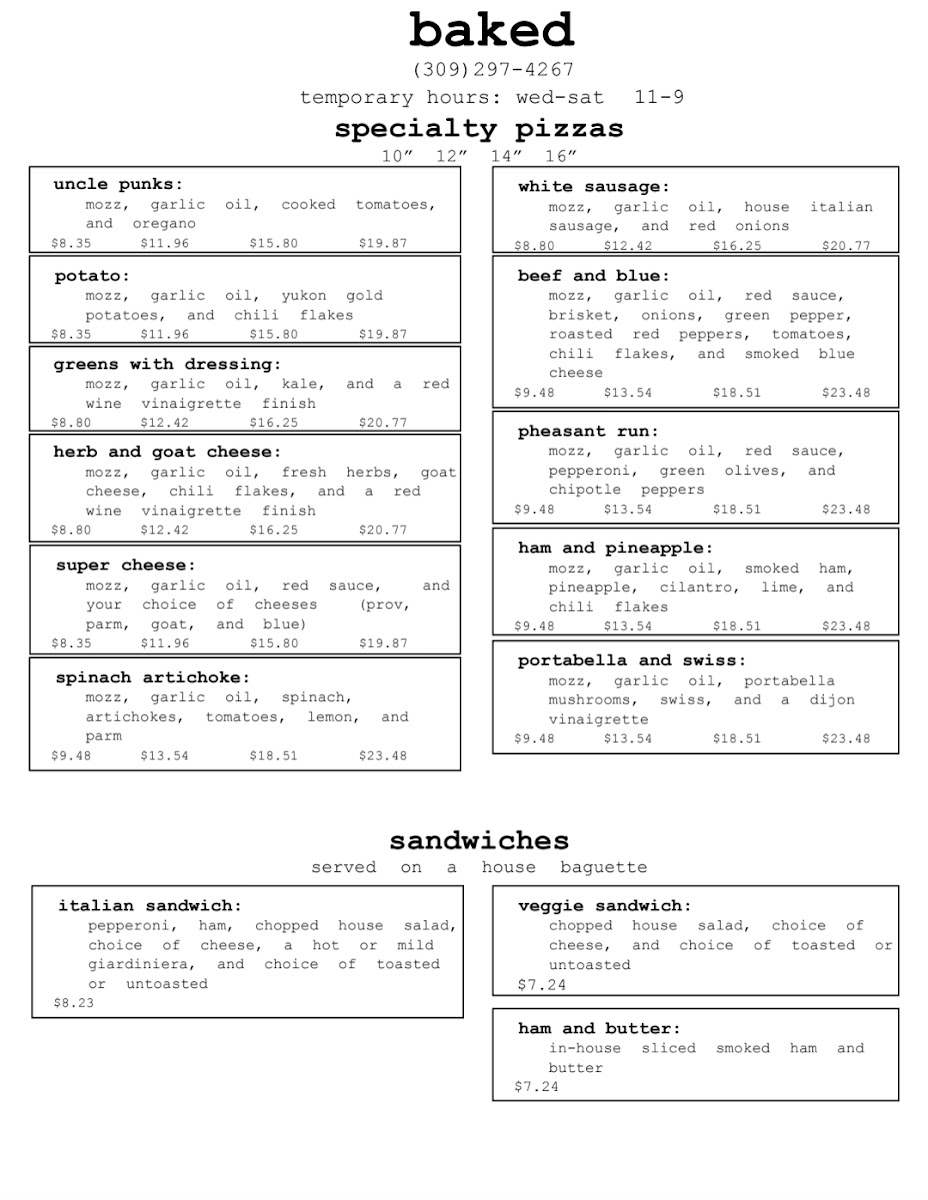 baked (pizzas) Menu