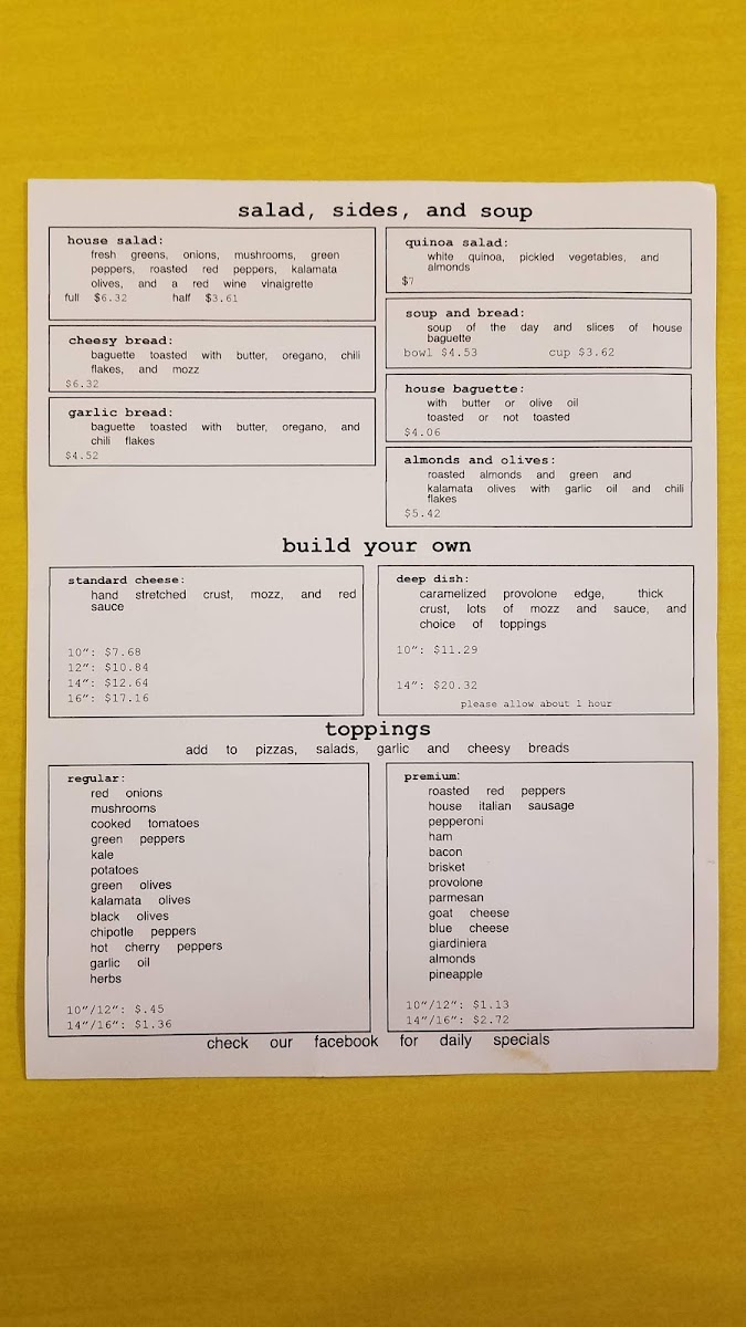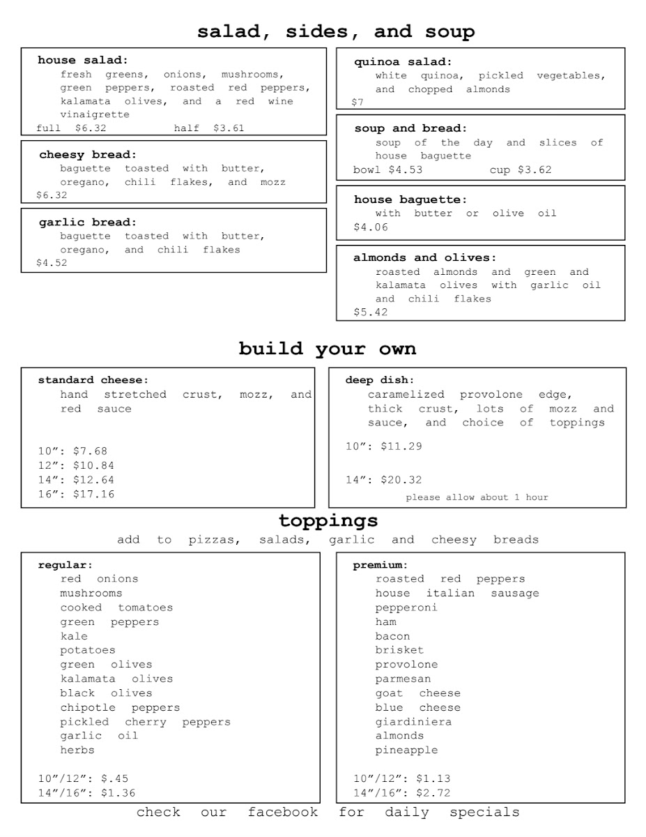 The menu at baked offers a welcoming mix of casual, satisfying options centered around their handcrafted pizzas. It’s the kind of place where you can stop by for a relaxed lunch or enjoy a cozy evening with friends over flavorful slices and thoughtfully paired drinks.